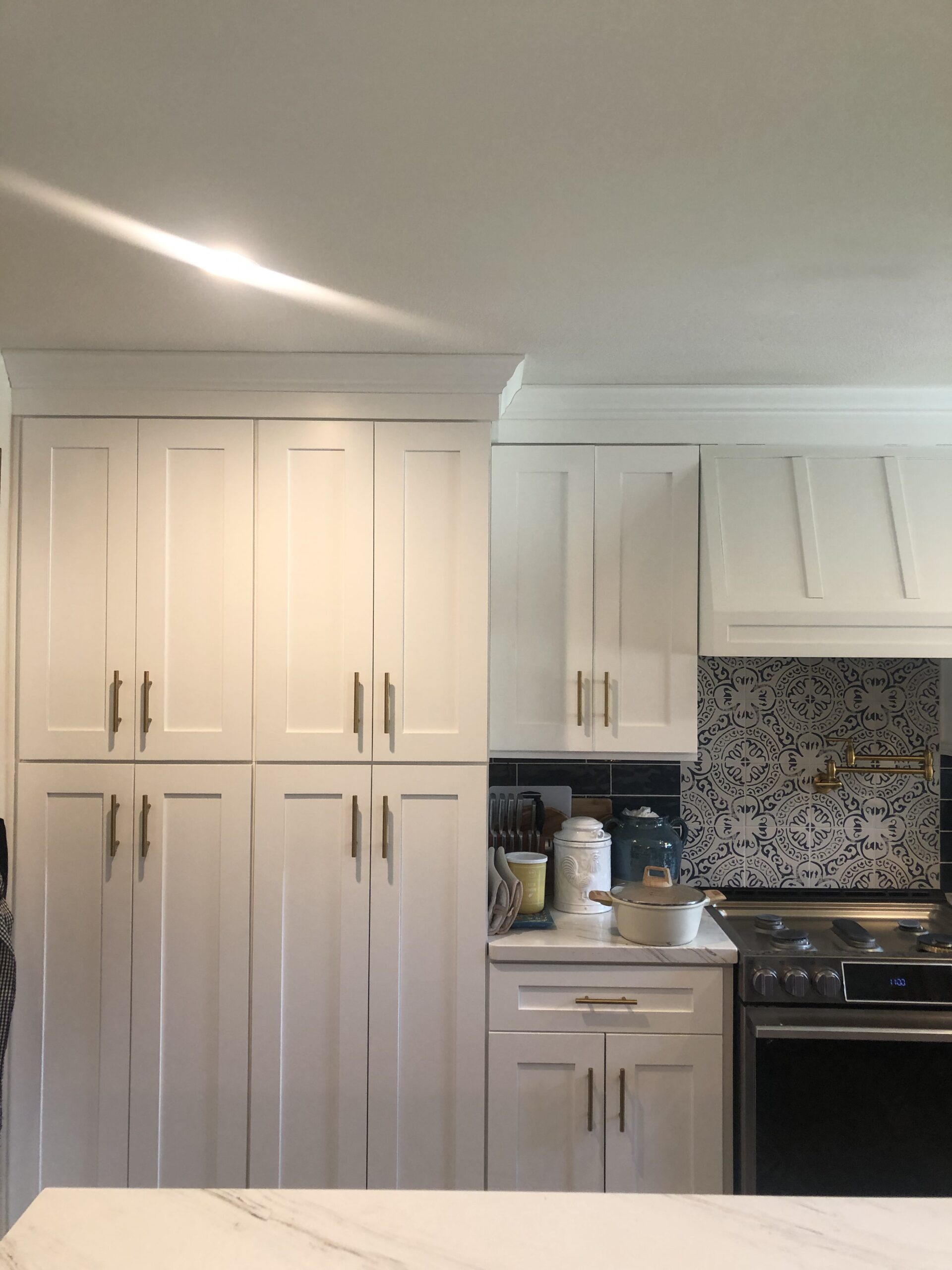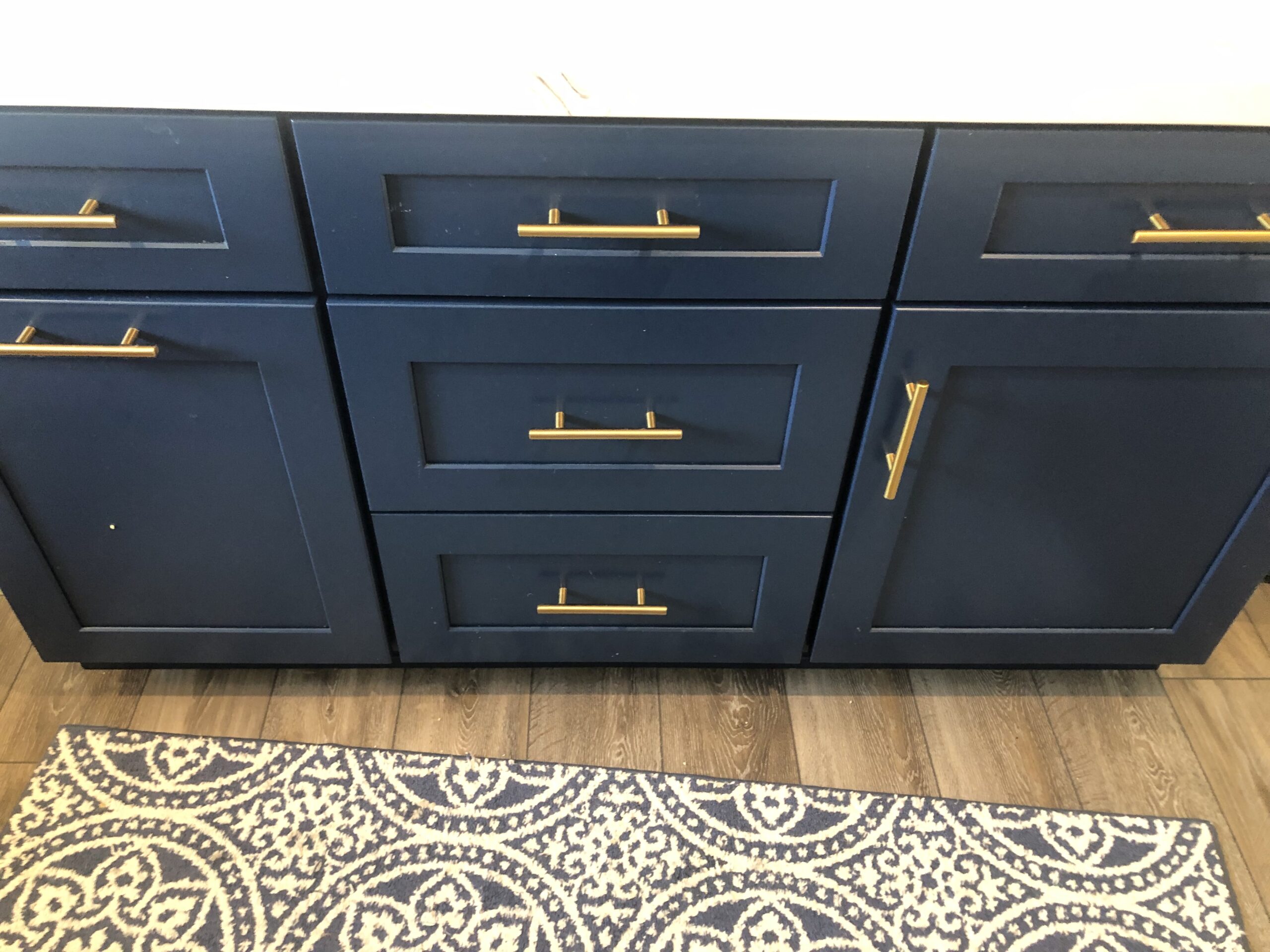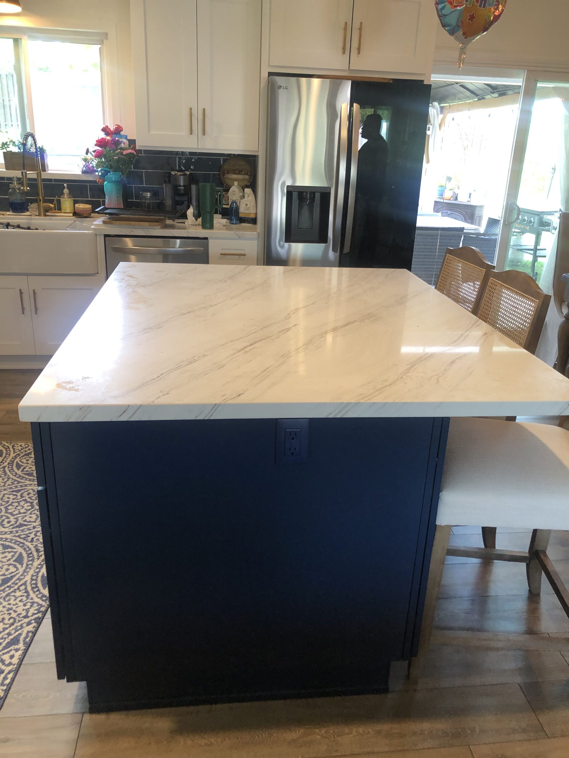This kitchen renovation began with a kitchen demo and haul away, preparing the space for a stunning upgrade. The cabinetry featured a striking combination of Blue and Ice White Shaker cabinets, blending modern elegance with classic charm. The countertops were crafted from Tuscany quartz, adding warmth and sophistication to the design.